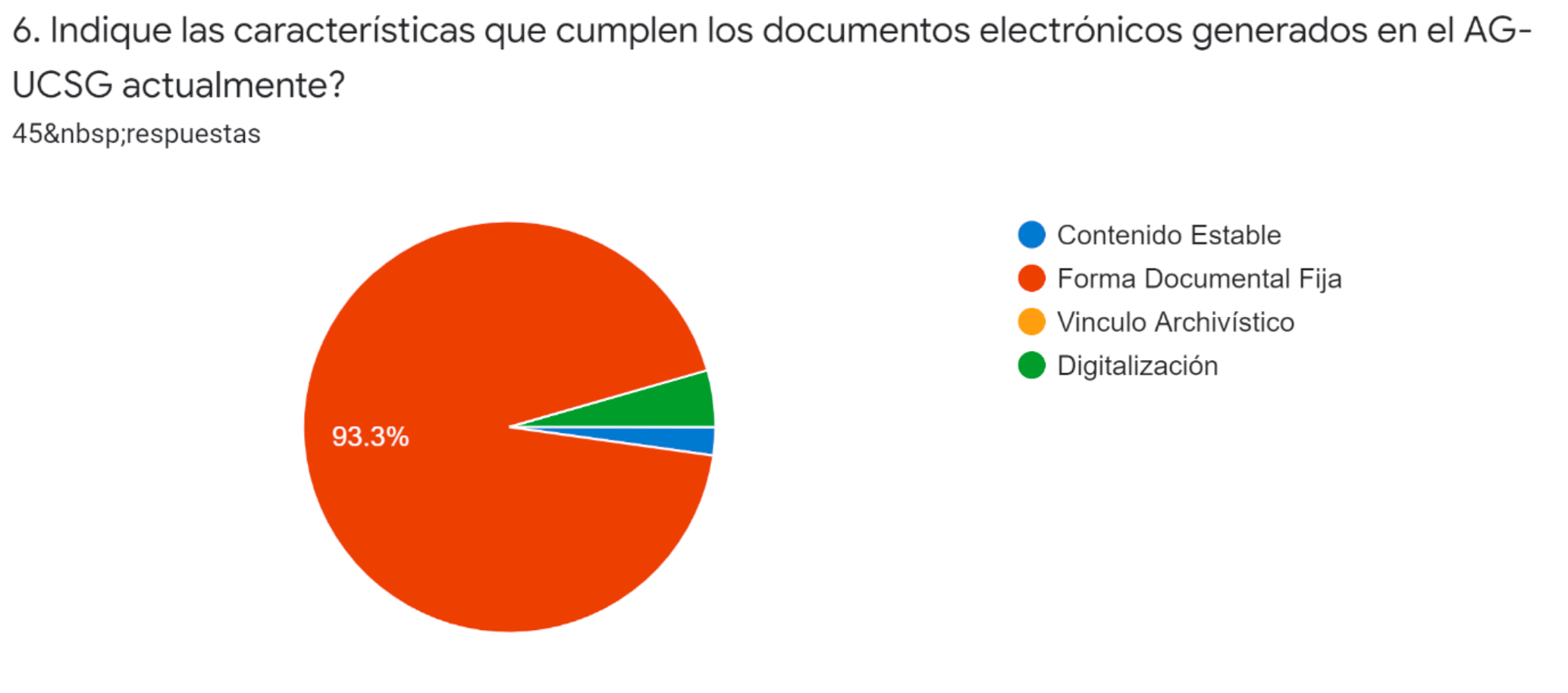 Atención especial amerita la normativa interna de la UCSG, elaborada en atención a los requerimientos de la norma ISO 30301 referida a la gestión documental, y en concordancia con el articulado de la Ley Orgánica de Transparencia y Acceso a la Información Pública, y su reglamento interno. Entre los aspectos más significativos resalta el carácter obligatorio de la organización básica y gestión de archivo, dictaminado a través de un instructivo publicado en el Registro Oficial N° 67 del 25 de julio de 2005, en el que se específica la normativa para la administrar la documentación que generen en todas las instituciones públicas y privada con participación del Estado. Resulta importante la obligatoriedad institucional integrar en el organigrama estructural y funcional, instancias responsables de la gestión documental.