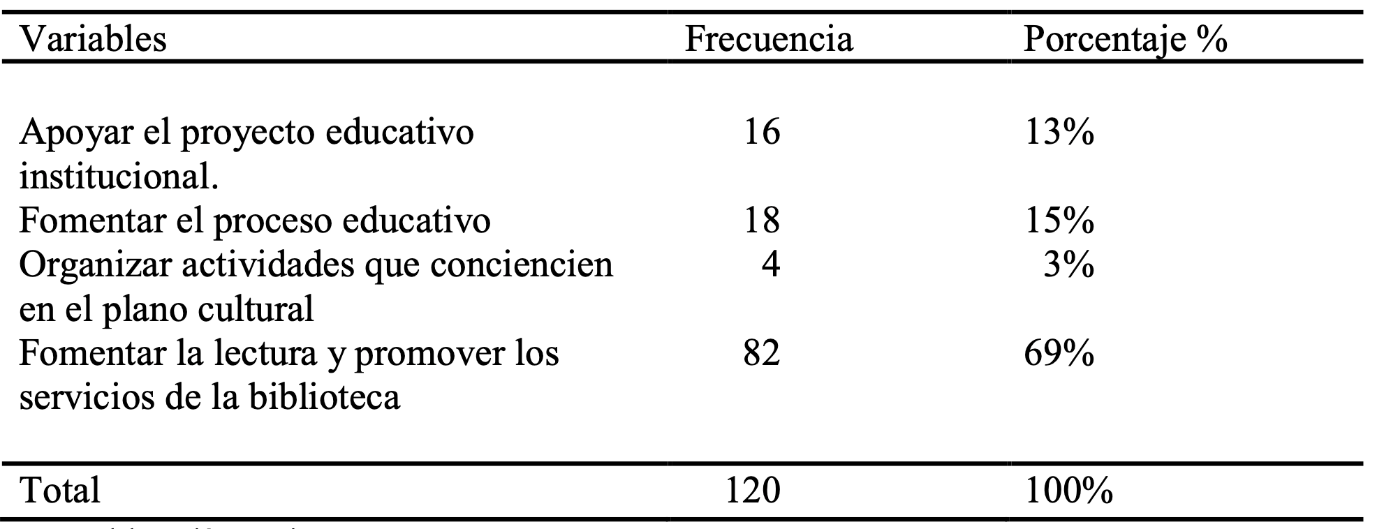 Por esta razón, Escoriza (2015) considera que las bibliotecas juegan un papel importante en la formación lectora y la formación documental, pues la enseñanza debe adaptarse a los cambios sociales y tecnológicos donde la recogida, selección, recuperación y transmisión de información son aprendizajes imprescindibles, y el alumno debe disponer de las estrategias precisas para lograrlo. En este sentido, la biblioteca tiene requerimientos muy importantes que cumplir en cuanto a su gestión, pues este espacio de apoyo para el aprendizaje se hace ideal cuando se presenta una dinámica en la que se comparten y asumen objetivos, dando respuestas colectivas a la necesidad de innovación que plantea la práctica pedagógica.
