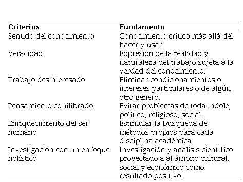 La tabla 1 presenta los procesos claves que debe contener el sistema de gestión de la investigación, dichos criterios y/o políticas involucran la necesidad de constituir un sistema de investigación central (Useda, 2014):
