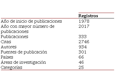 Después de 40 años de haberse iniciado las publicaciones en esta línea de investigación, este trabajo es la primera revisión bibliométrica que se elabora, y en la Tabla 14 se presenta un resumen de los resultados obtenidos.