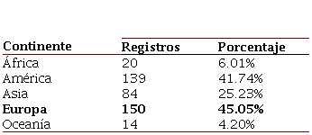 El quinto indicador de productividad que se obtuvo a partir de la bibliometría es la producción por zona geográfica. En la Tabla 8 se muestra la distribución por continente, apareciendo Europa como la zona con mayor generación de publicaciones con poco más del 45% de la producción científica. A mayor detalle, la Tabla 9 expone los países con diez publicaciones o más, estando a la cabecera Estados Unidos que aporta por arriba del 35% sobre el total de los documentos. Asimismo, el siguiente indicador bibliométrico está relacionado con la producción por idioma en que se encuentran publicadas las investigaciones, donde se tiene que 329 están en inglés y cuatro en español.
