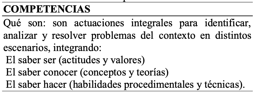 A continuación, se expone un cuadro sobre las competencias, extraído del texto de Tobón: