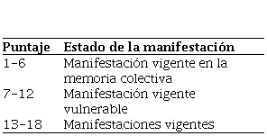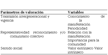 También se realizó la valoración de las manifestaciones mediante la metodología para validar y valorar el Patrimonio Cultural Inmaterial y así conocer su estado actual. Los parámetros a evaluar fueron: