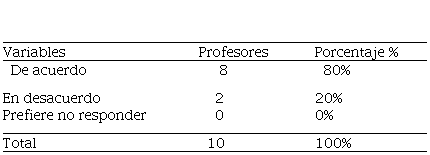 En este apartado se sistematiza el trabajo empírico realizado mediante encuestas a los diez docentes que laboran en el área de preescolar de la Unidad Educativa Fiscal del Milenio Albertina Rivas de Santa Ana, Manabí, Ecuador.