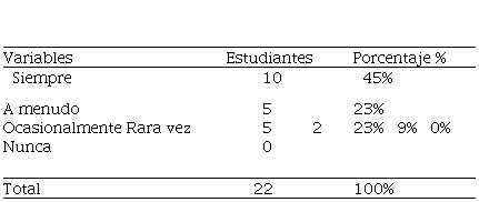 elaboración propiaLa neurodidáctica es una nueva visión de la enseñanza basada en el estudio del cerebro. Es tomar los conocimientos sobre cómo funciona el cerebro integrados con la psicología, la sociología y la medicina en un intento de mejorar y potenciar tanto los procesos de aprendizaje como enseñar mejor en los profesores En este sentido, de la primera pregunta realizada a los estudiantes se puede inferir que un 45% de alumnos menciona que Siempre la activación de las hormonas cerebrales es de gran importancia en los procesos de enseñanza y aprendizaje; un 23% optó por la respuesta A menudo, mientras que un porcentaje similar se inclinó por el ítem Ocasionalmente. Finalmente, la alternativa Rara vez obtuvo apenas un 9% de aceptación.