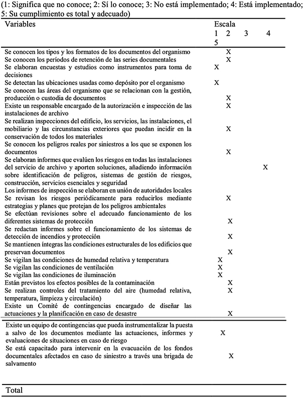 • Se elaboran informes que evalúen los riesgos en todas las instalaciones del servicio de archivo y aporten soluciones, añadiendo información sobre identificación de peligros, sistemas de gestión de riesgos, construcción, servicios esenciales y seguridad