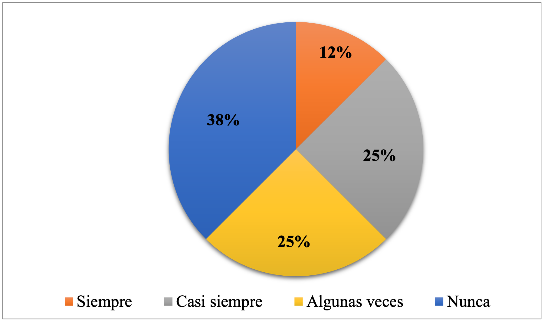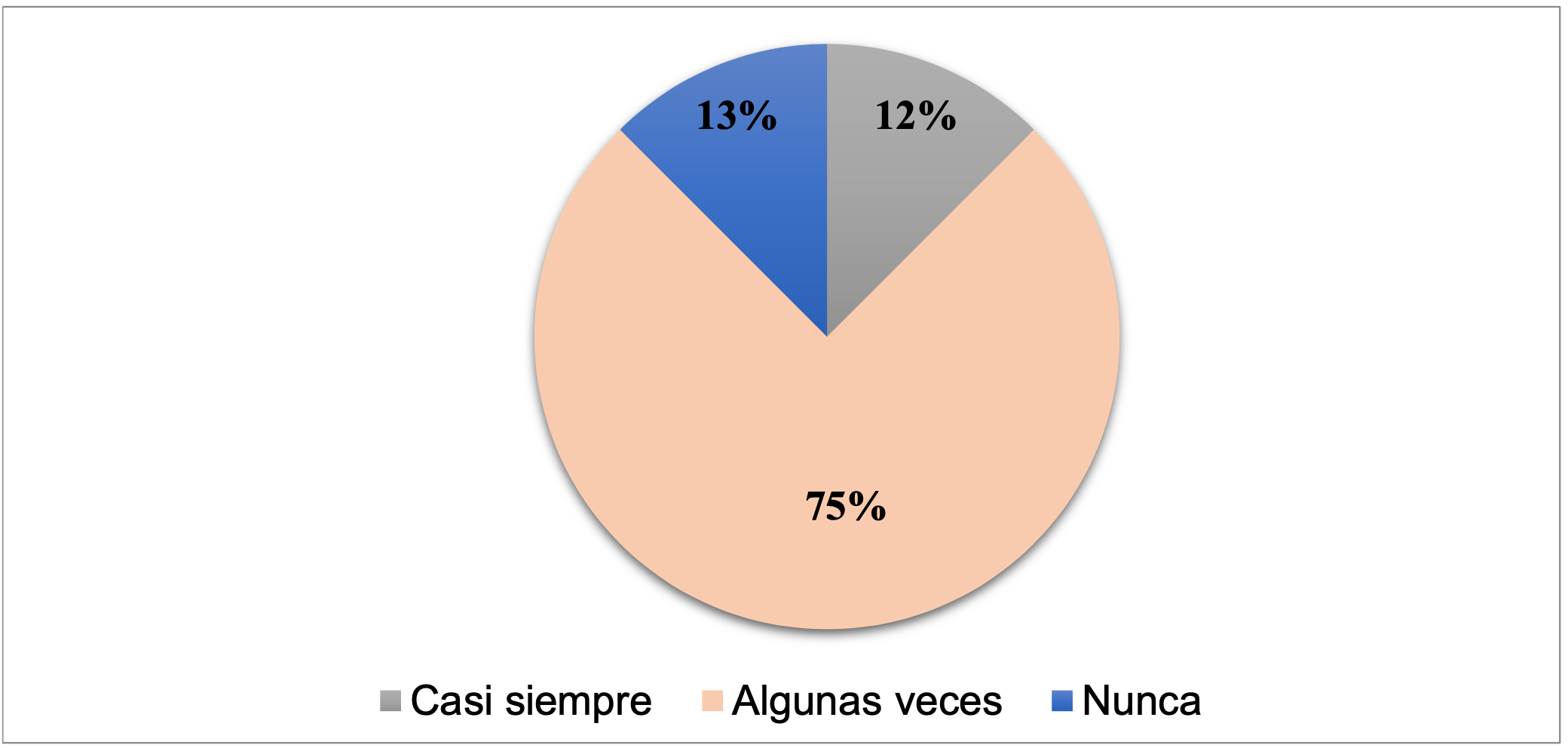 El instrumento tipo cuestionario fue elaborado con preguntas dicotómicas, siguiendo la metodología de Ramírez, (2019), es decir, con dos opciones de respuestas: sí o no; otras fueron politómicas, pues tuvieron opciones múltiples de respuestas, por ejemplo, siempre, casi siempre, algunas veces, nunca. El método para poder aplicar este instrumento fue de manera virtual, vía WhatsApp. Una vez obtenidos los resultados del cuestionario se procedió a agrupar los datos y organizarlos en cuadros y gráficos a través de Excel para así poder hacer el respectivo análisis en el capítulo de resultados y discusión.