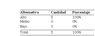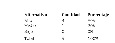 Seguidamente se evidencia el desarrollo de los resultados producto de las preguntas enfocadas en la encuesta realizada a los involucrados, donde se manifiesta en criterios de alto, medio y bajo, presentadas en tablas y gráficos en formato de Excel, con escala de línea de tendencia en cada una de ellas.