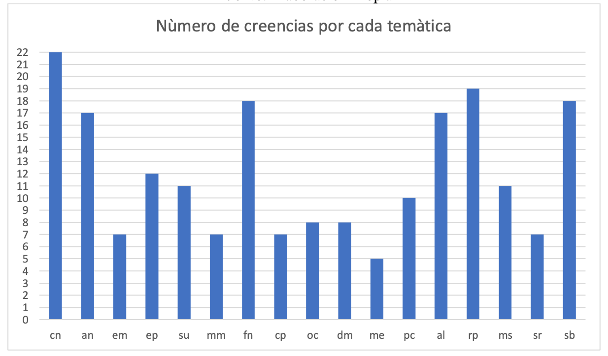 Finalmente, se realizó un análisis comparativo numérico para determinar las temáticas con mayor número de creencias, así como las creencias nombradas más veces por los entrevistados.