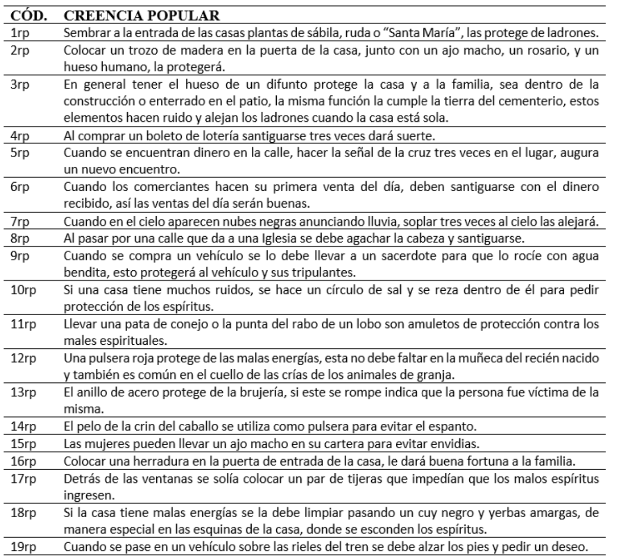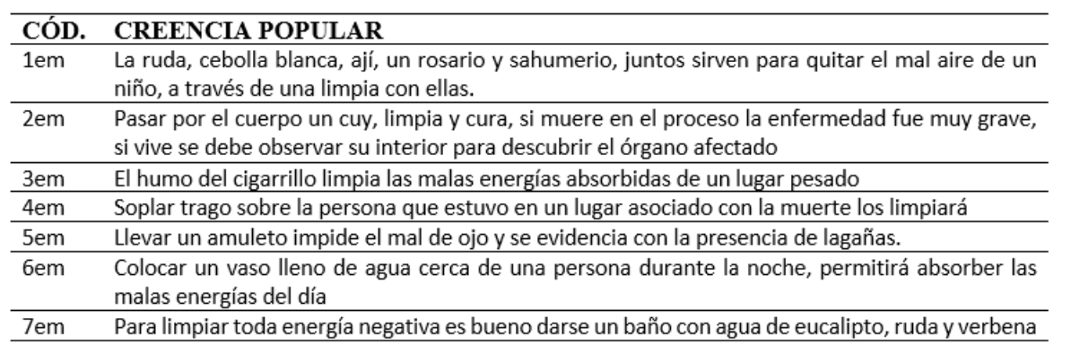 Citación/como citar este artículo: Sandoval, M., Villacrés, M., Plaza, J. y López, M. A. (2022). Creencias populares transmitidas en el contexto familiar: Relatos de manifestaciones culturales mágicas y narrativas de Riobamba. ReHuSo, 7(1) 1-18. DOI: https://doi.org/10.5281/zenodo.5814010