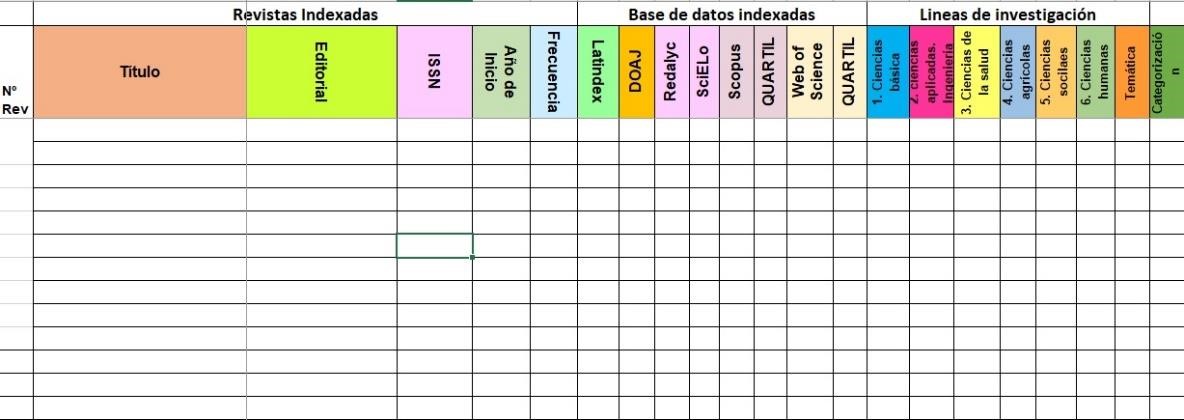 § Ficha de registro de datos de las áreas temáticas y/o líneas de investigación de las revistas científicas peruanas las que son de impacto.