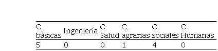 Ciencias sociales, Filosofía, Derecho, Economía, Lingüística, Medios de comunicación, Veterinaria, Psicología, Biología, Agricultura.