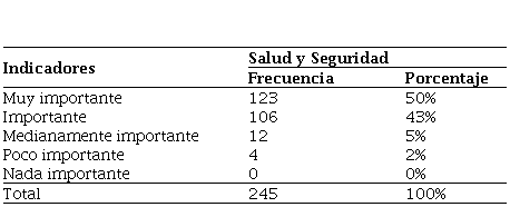 La tabla 11 permite visualizar el grado de importancia de la salud y seguridad respecto al desarrollo turístico sostenible del cantón Colta.
