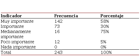 Además, en el mismo tema, en la tabla 4. Se observa la medida de importancia que le otorga la población a la posibilidad de conocer a través de los bienes inmuebles las formas de pensar de los antiguos pobladores de la localidad.