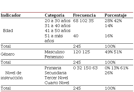 Mediante el tipo de muestreo aleatorio simple y la fórmula de poblaciones finitas se determinaron las muestras de estudio; para la variable independiente 243 personas y para la variable dependiente, 245 personas.