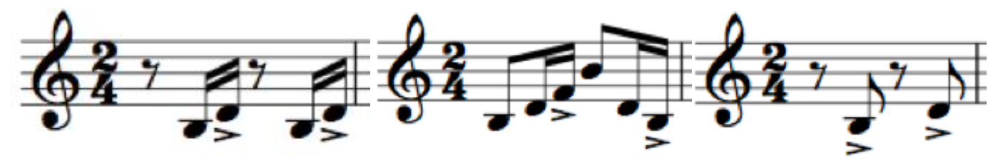 El esquema rítmico de la percusión no ejecuta la clave de son 2-3, que era la base rítmica, no obstante, se mantiene la contracampana de la música afrocubana y las tumbadoras solo interpretar el esquema rítmico de la cumbia colombiana. Por otro lado, los patrones rítmicosmelódicos del bajo electrónico tuvieron un carácter sincopado tal como se puede evidenciar en los composiciones como: Vida (1978), Perdón amor (1978) del Grupo Celeste; Ven mi amor (1977), Soy provinciano (1978), Ese amargo amor (1979) y La paz y la dicha (1979) de Chacalón y La Nueva Crema (Alvarado, 2014).