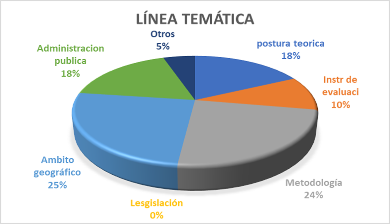 En relación a la temática, más del 50 por ciento de los artículos están referidos a la metodología para la implementación de gobierno electrónico, 32 por ciento de los estudios se concentran en instrumentos de evaluación del gobierno electrónico, como se muestra en la figura 2.