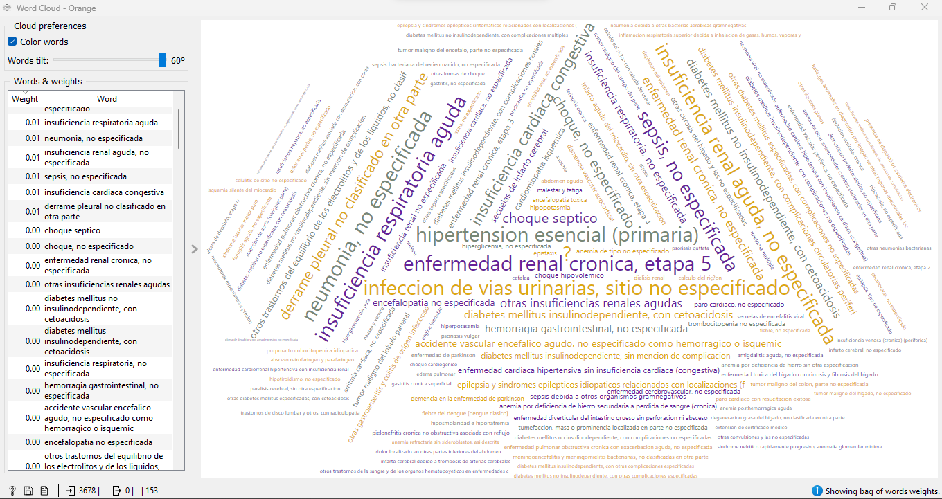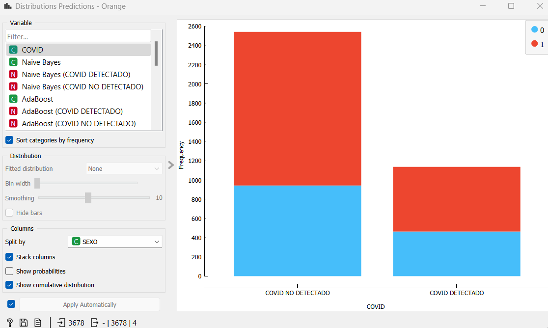 Los datos correspondientes a las variables: sexo, edad, provincia, cantón, parroquia, síntomas y saturación de oxígeno, fueron introducidos en el software Orange Data Mining, arrojando diferentes resultados. Asimismo, se interrelacionaron las variables, realizando diferentes agrupaciones para identificar tendencias. Esta selección de variables puede ayudar a reducir el ruido en los datos y mejorar la precisión de las predicciones (Herrera et al.,2021).