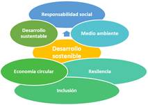 · Economía circular. - La economía circular proporciona un enfoque integral para abordar las causas subyacentes de los desafíos globales como el cambio climático, la pérdida de biodiversidad, el aumento de residuos y la contaminación. Al hacerlo, también abre importantes oportunidades de crecimiento económico y para el desarrollo de las ciudades (Varela, 2018; Almeida y Días, 2020; Albadajo y Mirazo, 2021).