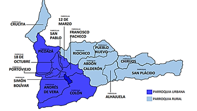 En la costa central de la provincia Manabí de la República del Ecuador, se encuentra el cantón Portoviejo, cuya capital es la ciudad homónima. Según los estimados del Instituto Nacional de Estadísticas, la población cantonal asciende actualmente a cerca de 325 mil habitantes, de los cuales alrededor del 20% habita en las siete parroquias rurales, mientras que el resto se distribuye en las nueve parroquias urbanas localizadas en la ciudad capital.