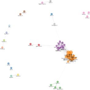 Quanto a co-autoria dentre os trabalhos, a figura 6 demonstra visualmente as relações entre os principais autores. Podese notar que há uma correlação mais proeminente entre autores de um mesmo país, como é o caso do cluster da cor laranja que representa mais conexão dos autores da Bélgica, como Van Dyck, Deforche entre outros, e de outros países da Europa entre si. No cluster rosa (a direita) observa-se maior relação entre autores chineses, como Liu Y., Wang Y. e Zhang Y. O cluster verde demonstra mais co-autoria entre autores britânicos como Jenna Panter, David Ogilvie, e Andrew Goodman. Pode-se supor que a proximidade geográfica e até mesmo de idiomas pode favorecer a co-autoria entre os autores.