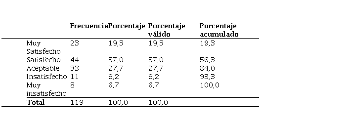 La encuesta escala de Likert aplicada, tiene el propósito de recabar datos e información relevante para el estudio, en el que cada ítem adopta un rango de respuesta de cinco aspectos, tales como: (5) Muy satisfecho; (4) Satisfecho; (3) Aceptable; (2) Insatisfecho; (1) Muy Insatisfecho