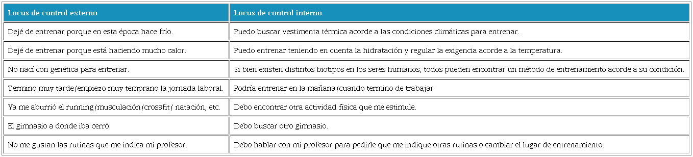 En la misma línea se puede plantear instruir al paciente/alumno para que reconozca su locus de control y pueda modificarlo [41]. Este concepto hace referencia a la atribución que hacen las personas del control sobre los eventos que ocurren en sus vidas [42]. Julian Rotter, quien acuñó el concepto, definió dos formas yuxtapuestas de locus de control: el de control interno y el externo [43].
