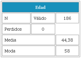 De acuerdo a lo que se observa en la Tabla 1, entre un total de 186 pacientes, la edad promedio de los profesores que reportan quejas vocales en el IST es 44,38 años. La más frecuente es 58 años.