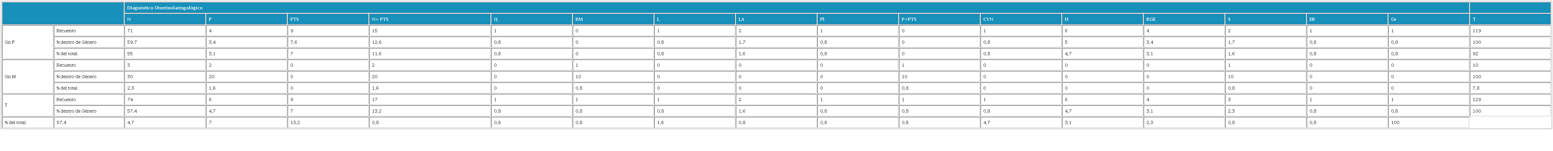 Para ilustrar si existe relación entre el género y el diagnóstico otorrinolaringológico, se elaboró la Tabla 3: