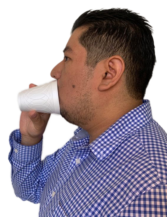 Se utilizan vasos de polietileno con un orificio similar al diámetro de un lápiz- La porción abierta más grande del vaso está completamente sellada alrededor de la boca. El tamaño del vaso debe ser adecuado al tamaño de la cara y boca de cada persona, para así producir un cierre completo.