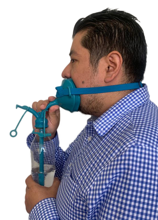 Vocal Feel: Es un dispositivo médico que está compuesto por una mascarilla, un filtro-humidificador con válvula unidireccional, gasas esterilizadas, un recipiente para poner agua en donde se producen burbujas y un estuche inteligente.