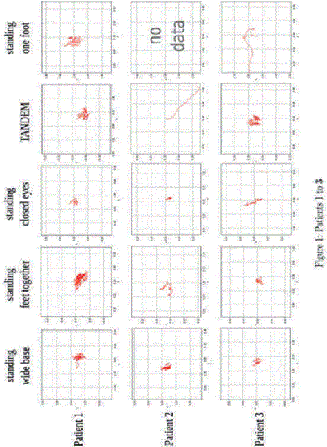 As expected, the COG trajectories obtained from patients exhibit wider sway paths in comparison to those previously obtained for healthy subjects. It can also be observed that some stabilograms lie out of the limits defined by an 8 ( 8cm2 area corresponding to the presence of momentary strong posture compensations during exercise execution or the inability to hold the standing position for the required time.
