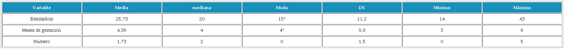 La muestra estuvo conformada por un total de 11 mujeres embarazadas en los periodos comprendidos entre los 4 a 9 meses de gestación, con una edad promedio de 25.7 ± 11,2 años, una edad mínima de 14 años y máxima de 43 años, residentes en la vereda La Meseta y quienes estaban vinculadas al programa del Instituto Colombiano de Bienestar Familiar (ICBF) en la estrategia “De Cero a Siempre”, el método fue por conveniencia, como criterios de inclusión las participantes debían estar en proceso de gestación entre los 4 a 9 meses, manifestarán su participación voluntaria y firmarán consentimiento informado; fueron excluidas del estudio aquellas mujeres que tuvieran riesgo de aborto, personas que no se presentaron a las evaluaciones y capacitaciones.