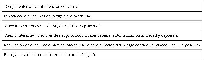 El contenido educativo utilizado contuvo los hábitos de vida saludable que se deberían llevar para reducir los factores de riesgos cardiovasculares.