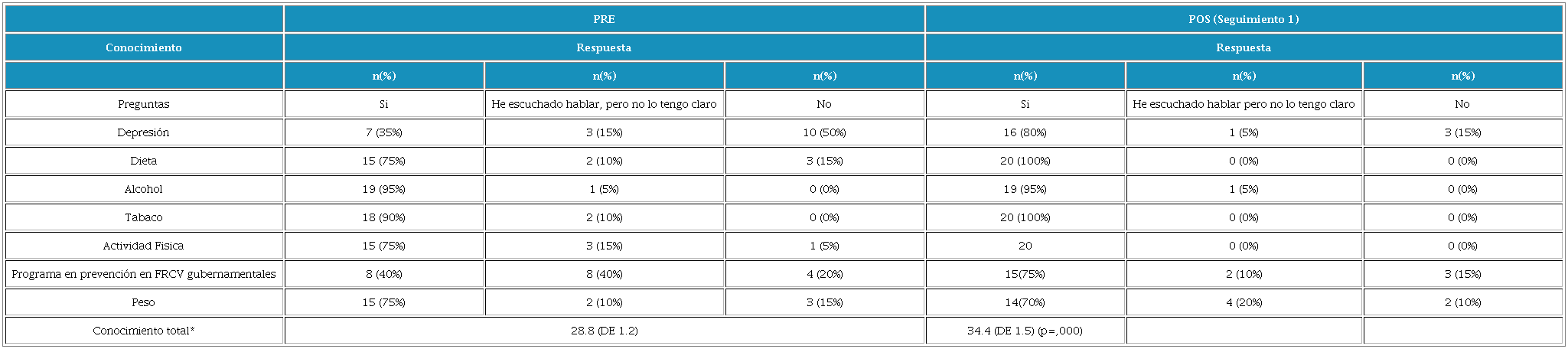 Efectos de la intervetnción educativa sobre el conocimiento de los factores de riesgo cardiovascular