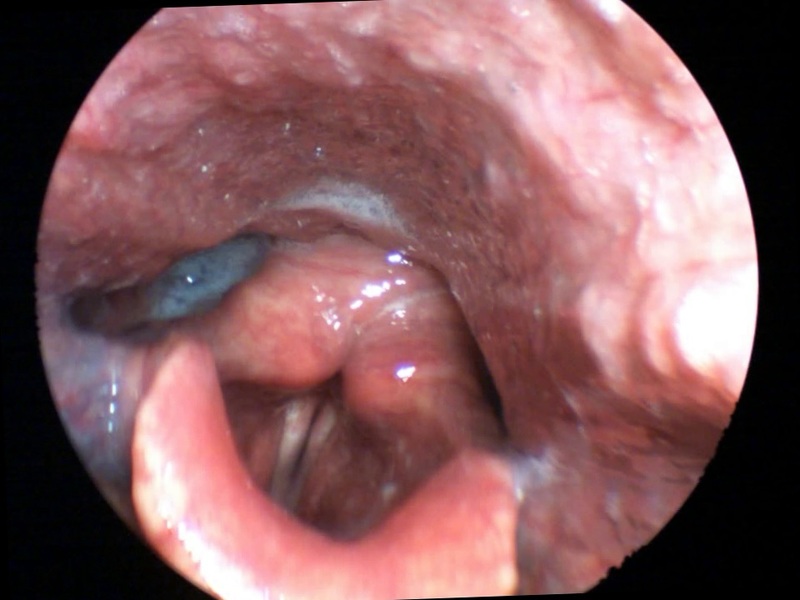 Photos G1 and G2 show the NAT strategy for unilateral or bilateral lesion of the vocal fold, from two different points of view for a better understanding: