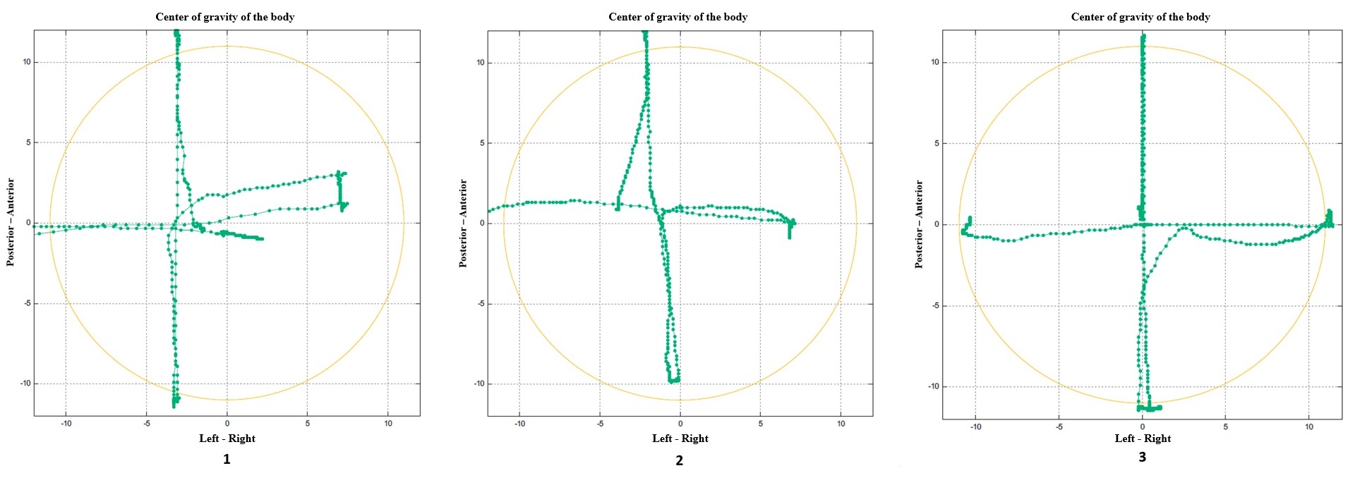 Initial evaluations were also carried out, consisting of three repetitions of each given activity, to favor the learning effect and the interaction with the software. Thus, the baseline was established to carry out a final evaluation. The software generates the results in a PDF. The document shows a report with the graphs of the displacements can be evidenced to analyze them later very descriptively, according to the differences in the graphical records of the initial and final evaluations.