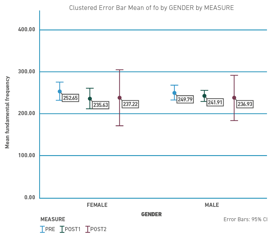 To determine the effect of the WVHPP on fundamental frequency (fo) and vocal sound pressure levels (SPL), we performed Generalized Estimating Equations. The models included three independent variables: gender (male and female), type of participant (teacher and students), and measure (baseline, first follow-up, and post-intervention follow-up).