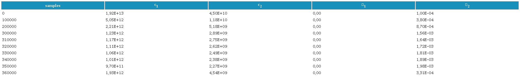Método: Se utilizó un algoritmo de búsqueda metaheurística para la síntesis paramétrica. El algoritmo se aplicó a los coeficientes de elasticidad c1 y c2, así como a los coeficientes de amortiguamiento ε1 y ε2, que se correlacionan directamente con las matrices de masa del modelo. Esto facilita el ajuste de la composición de las cuerdas para lograr un comportamiento fisiológico deseado.