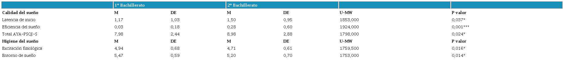 Conclusions: The acquisition of proper sleep hygiene becomes crucial to enhance the quality of rest and daytime functionality in adolescents, emphasizing its significance, especially in advanced academic levels and specifically in the case of females.