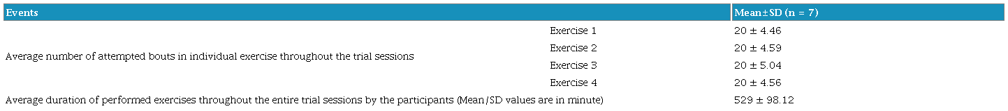 The exercise training related events in CG are elaborated in Table 4.