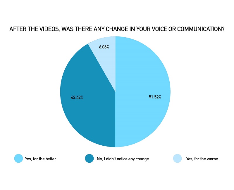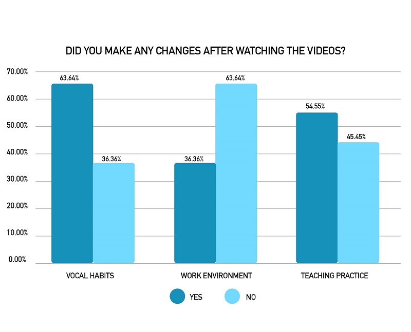 Teachers were also asked if they had noticed any changes in their voices and communication after watching the videos, most of whom reported improvements (Figure 3).