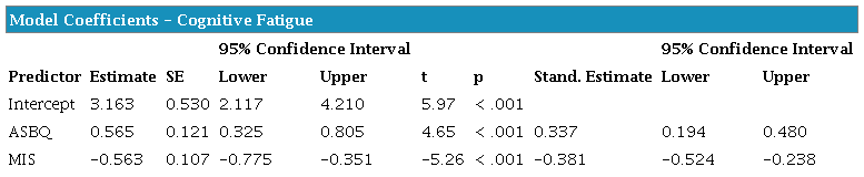 Predictors of Cognitive Fatigue: Regression Analysis