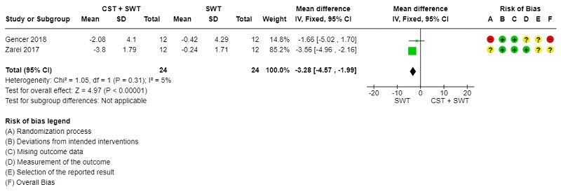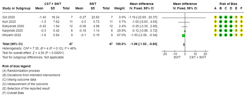 Methods: A systematic search was conducted in PubMed, Bireme, Scopus, and Web of Science (WOS), adhering to the Cochrane Handbook guidelines. Risk of bias was evaluated using the ROB2 scale, while the quality of the studies was assessed with the SIGN and CONSORT checklists. Data were analyzed using a fixed-effects meta-analysis in RevMan-Web, and heterogeneity was assessed using the 𝐼² and 𝜒² tests.