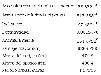 El FACSAT-1 quedó registrado como la tercera pieza (C) en quedar en órbita de ese lanzamiento con el número 43.721 de la catalogación del Norad. En la tabla 1 se muestra el primer conjunto de elementos orbitales3 que registra Celestrak.
