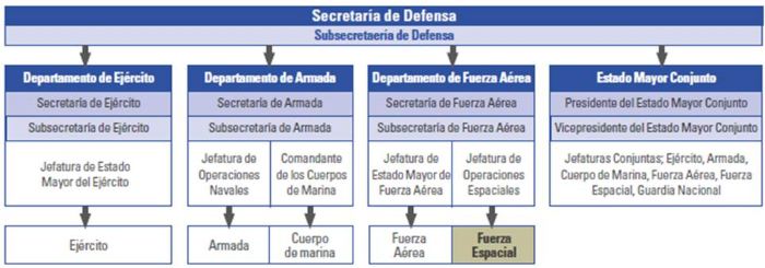 Reconociendo esta amenaza proveniente del espacio, los países mencionados anteriormente están preparando sus estrategias de seguridad y defensa nacionales. Estas le otorgan un papel protagónico a la defensa de sus activos espaciales y su territorio mediante el dominio del espacio y el ciberespacio. El ejemplo más claro de esto es la institucionalización, en Estados Unidos, de la Fuerza Espacial (USSF -United States Space Force-) el pasado diciembre del 2019 (figura 4).