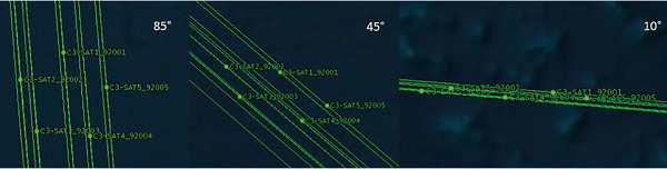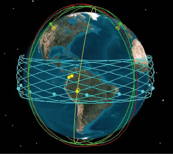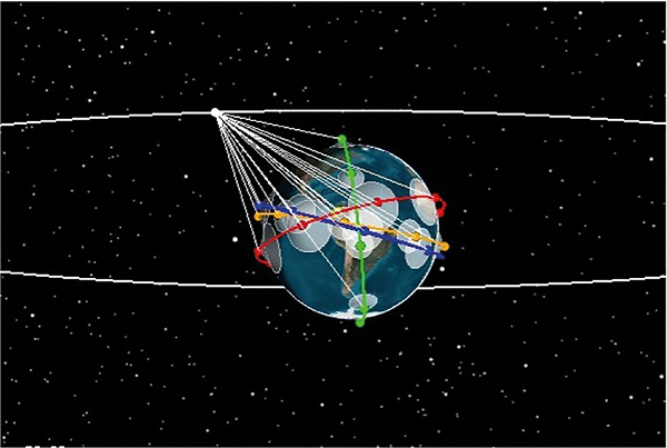 Later, a projection of what would be a constellation with complete coverage in different orbital planes is presented. Some alternatives in the design of constellations include the calculation of satellites located in a single orbital plane, in order to cover a linear perimeter in the orbit (figure 10).