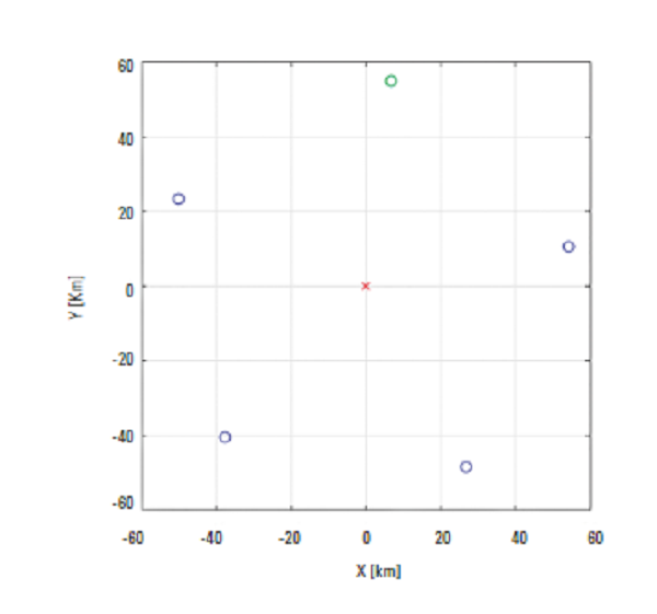 1) The TLE constellation file was created using the most recent TLE information about the FACSAT-1 as the central point of the constellation (red central cross in figure 14).
