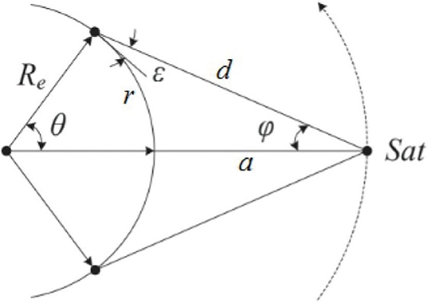 This method uses the following equations to calculate the coverage radius and the half cone angle (Fugmann & Klinkner, 2020), which is represented as the ϕ angle in figure 4. The known values are: ε, Re and A. This creates a triangle of sides Re, d, Re + a (Mingqi et al., 2016).