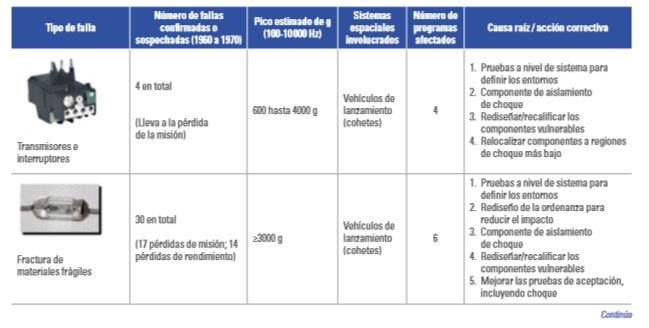 Junto a estos factores, en la tabla 2 se pueden observar otras cuatro fallas comunes de los sistemas de separación con uso de mecanismos pirotécnicos, junto con el número de fallas repetidas, el número de programas espaciales afectados, su tipo de misión y otras características importantes de las fallas. Por otro lado, estos dispositivos no son reutilizables, debido a que después de su activación quedan inoperables por las cargas explosivas y esto también les da una desventaja al momento de hacer pruebas del sistema (Torres, 2018). Por este tipo de fallas y accidentes que se han causado (como los mostrados en la figura 2), se busca que el sistema que se está seleccionando haga uso de dispositivos no-explosivos para que asegure la liberación y no comprometa el desarrollo de la misión.